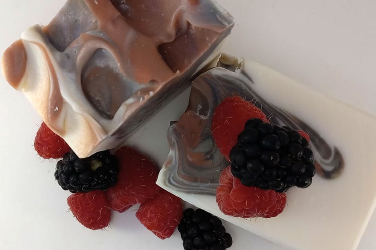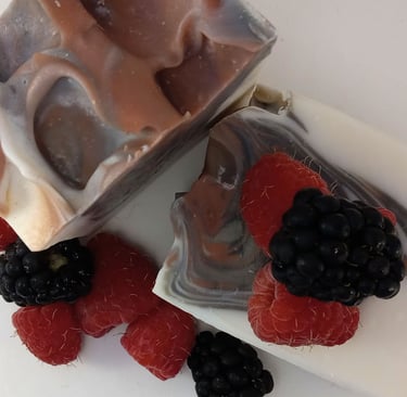 Design: We specialize in natural colorants using clays, botanical powders, minerals, and others like activated charcoal. We have many natural or herbal powders like oatmeal, rosehip powder, peppermint leaf powder, and more to use in your soap. While we do not stock synthetic colorants except for red and blue (which have no good natural alternative), we can special order them for your custom design. We will work with you to create a design that reflects you or your business! We do not use embeds, soap frosting, or soap dough at this time.